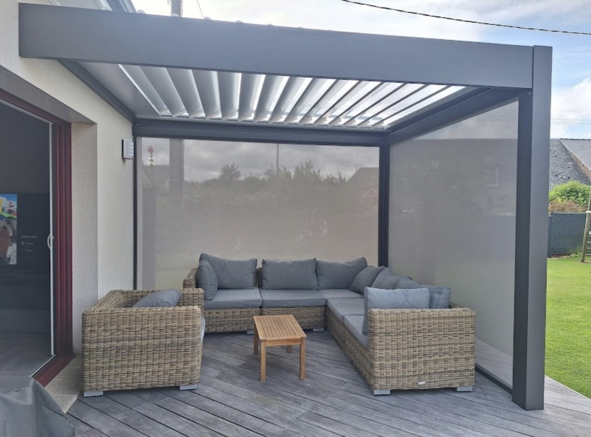 Les pergolas bioclimatiques vous permettent de contrôler l'ensoleillement et la ventilation grâce à leurs lames orientables, créant un microclimat parfait sur votre terrasse.